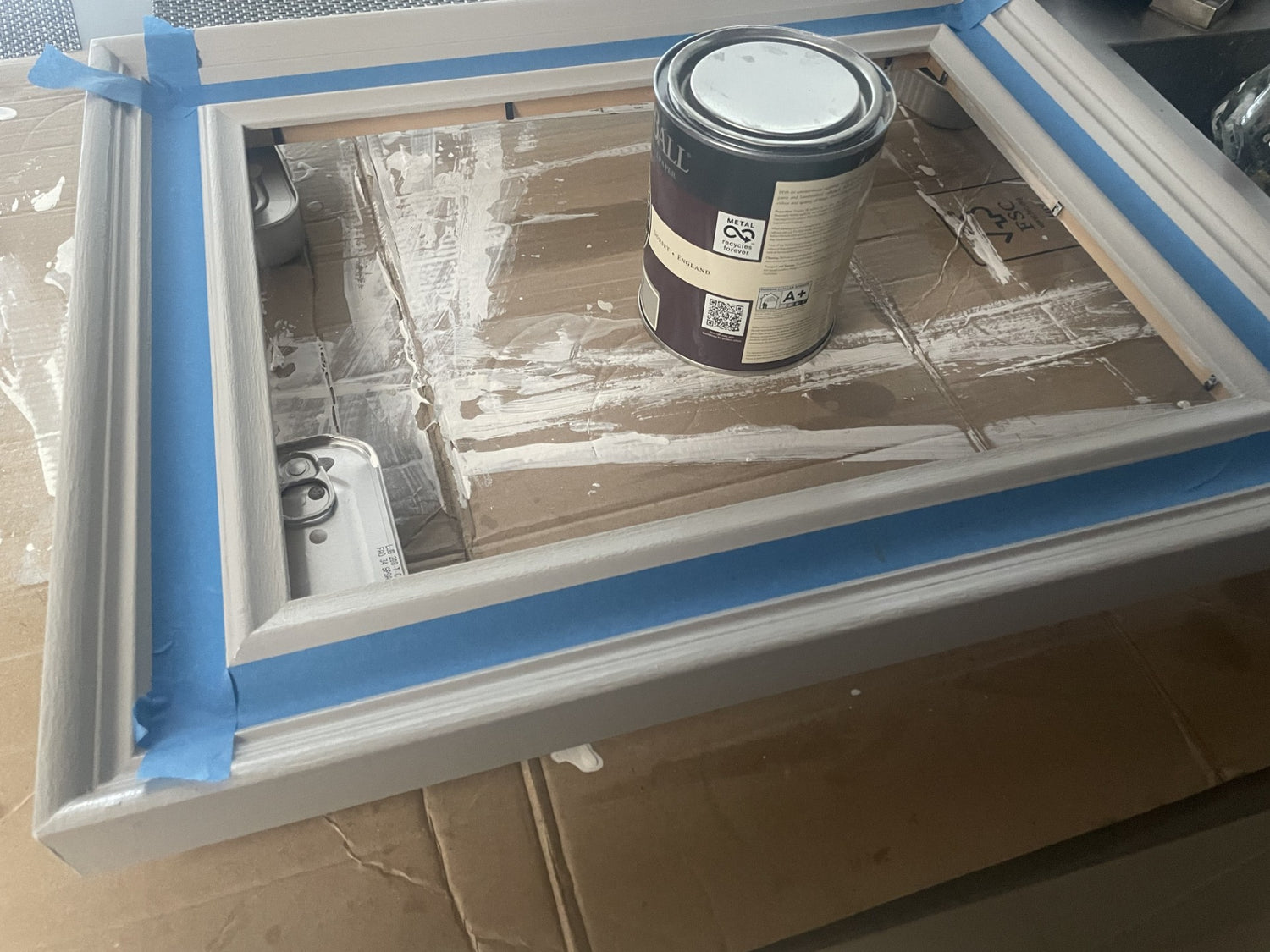 Frames are primed and painted twice by hand in customised Farrow & Ball eggshell colours to complement the artwork.