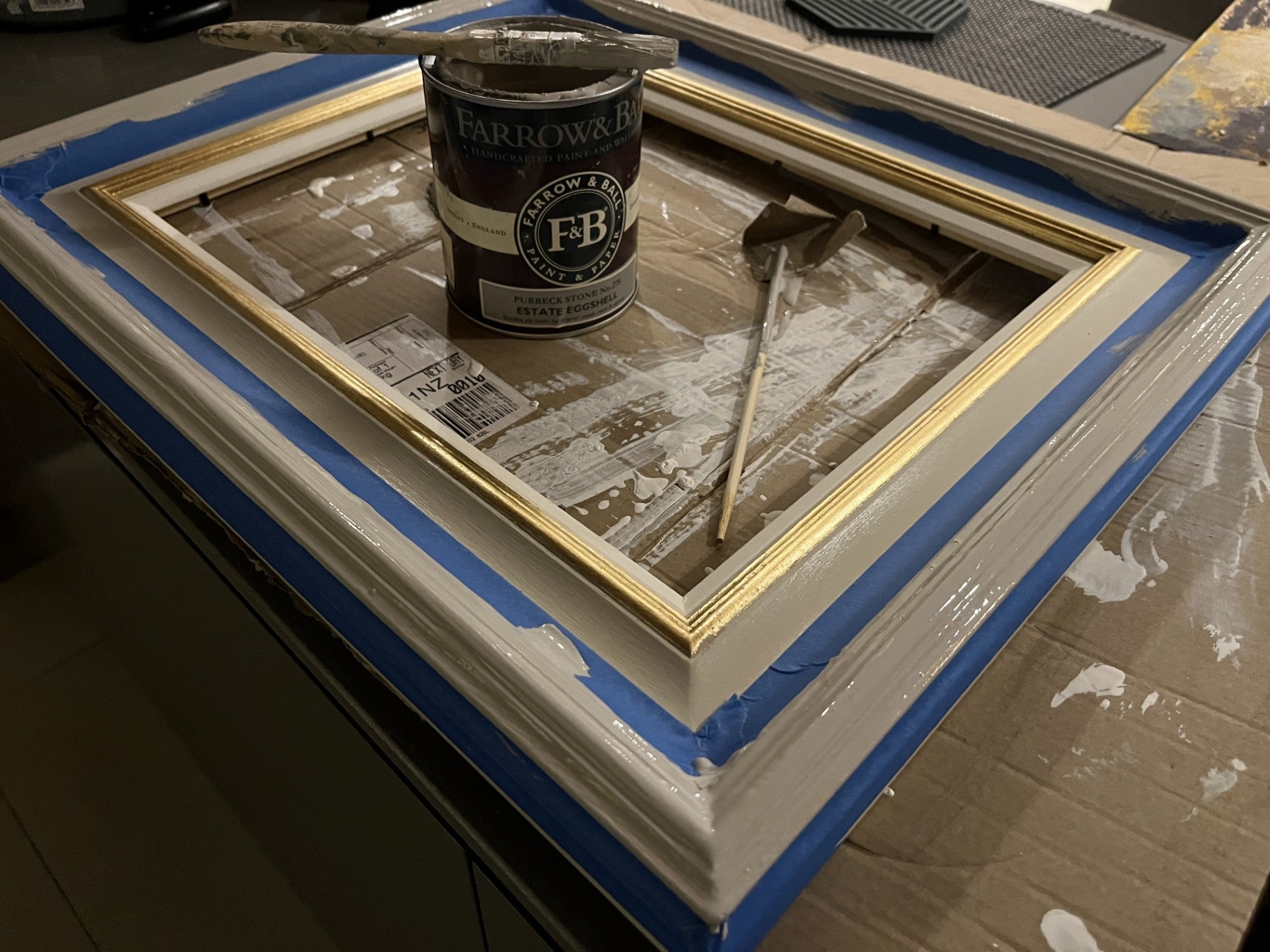 Frames are gessoed and painted twice by hand in customised Farrow & Ball eggshell colours to complement the artwork.